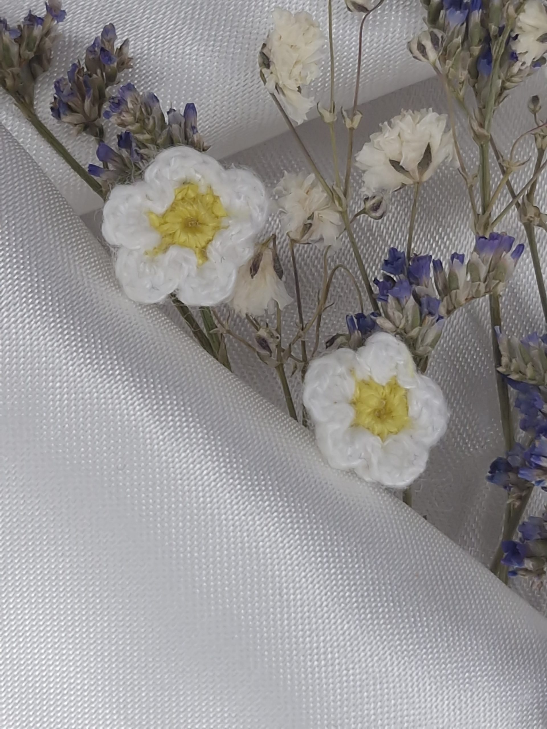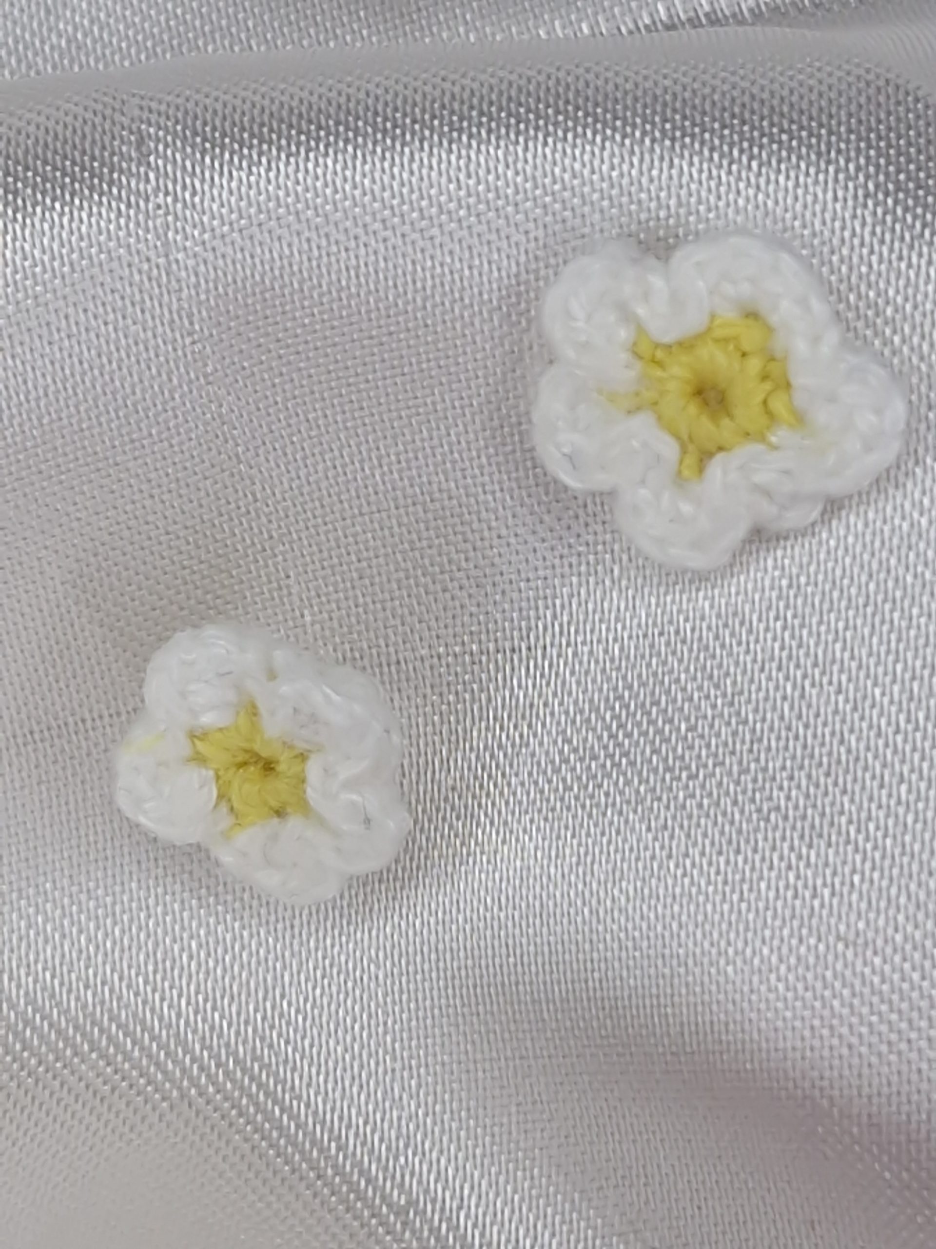 Chaque marguerite est crochetée à la main, avec soin et minutie. Leur format discret de 1,5 cm en fait un bijou léger et agréable à porter, parfait pour accompagner le quotidien tout en apportant une touche florale et poétique.